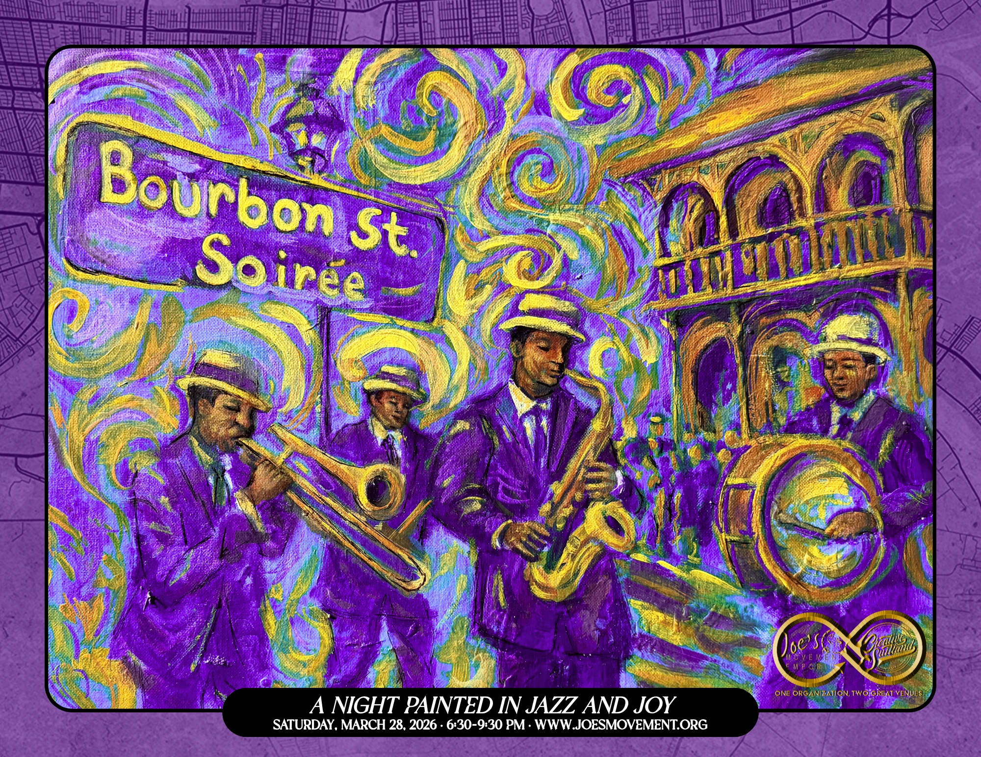 Step into the vibrant spirit of New Orleans at Joe’s Movement Emporium’s Bourbon Street Soirée! This unforgettable gala will transport you to the heart of The Crescent City with dazzling colors, lively music, and the irresistible energy of Bourbon Street. Enjoy an evening of festive entertainment, exquisite cuisine, and spirited dancing—all while supporting the transformative arts programs that empower our community.
