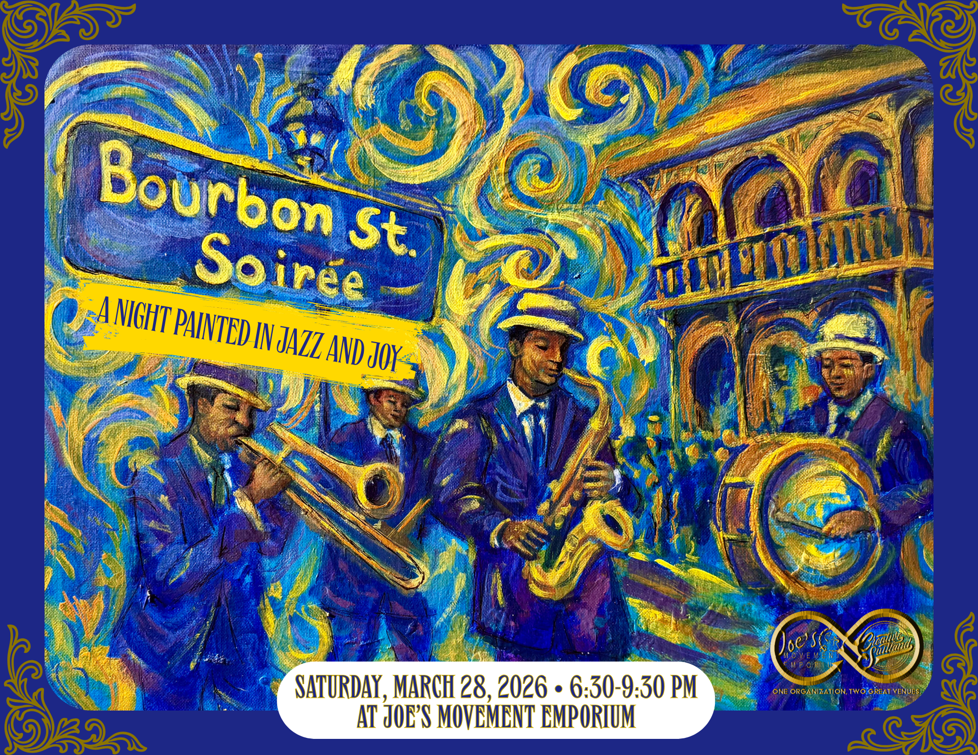 Step into the vibrant spirit of New Orleans at Joe’s Movement Emporium’s Bourbon Street Soirée! This unforgettable gala will transport you to the heart of The Crescent City with dazzling colors, lively music, and the irresistible energy of Bourbon Street. Enjoy an evening of festive entertainment, exquisite cuisine, and spirited dancing—all while supporting the transformative arts programs that empower our community.
