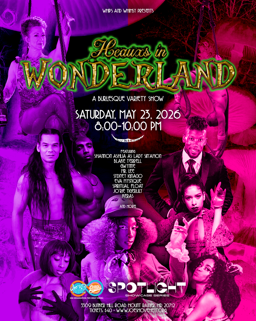 NOW! is an aerial showcase, bringing together performers from across the DMV. There will be performances on aerial silks, sling, and many more apparatuses. Each performer will share their unique vision of artistry in the air, resulting in an eclectic mix of themes and music style.