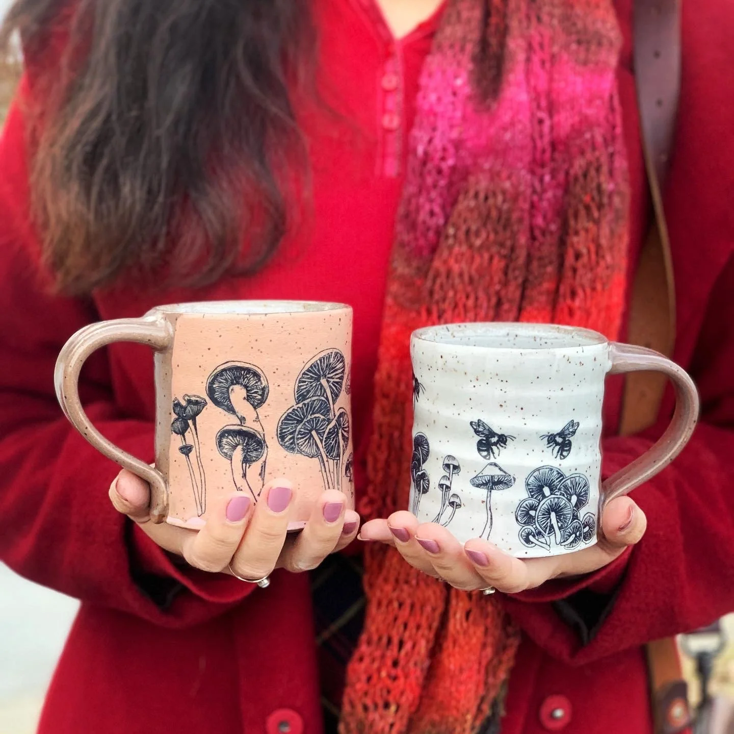 Their ceramics are also made in-house using both the potter’s wheel and hand-built techniques. They work with stoneware clay and colorful underglazes inspired by their South American heritage.