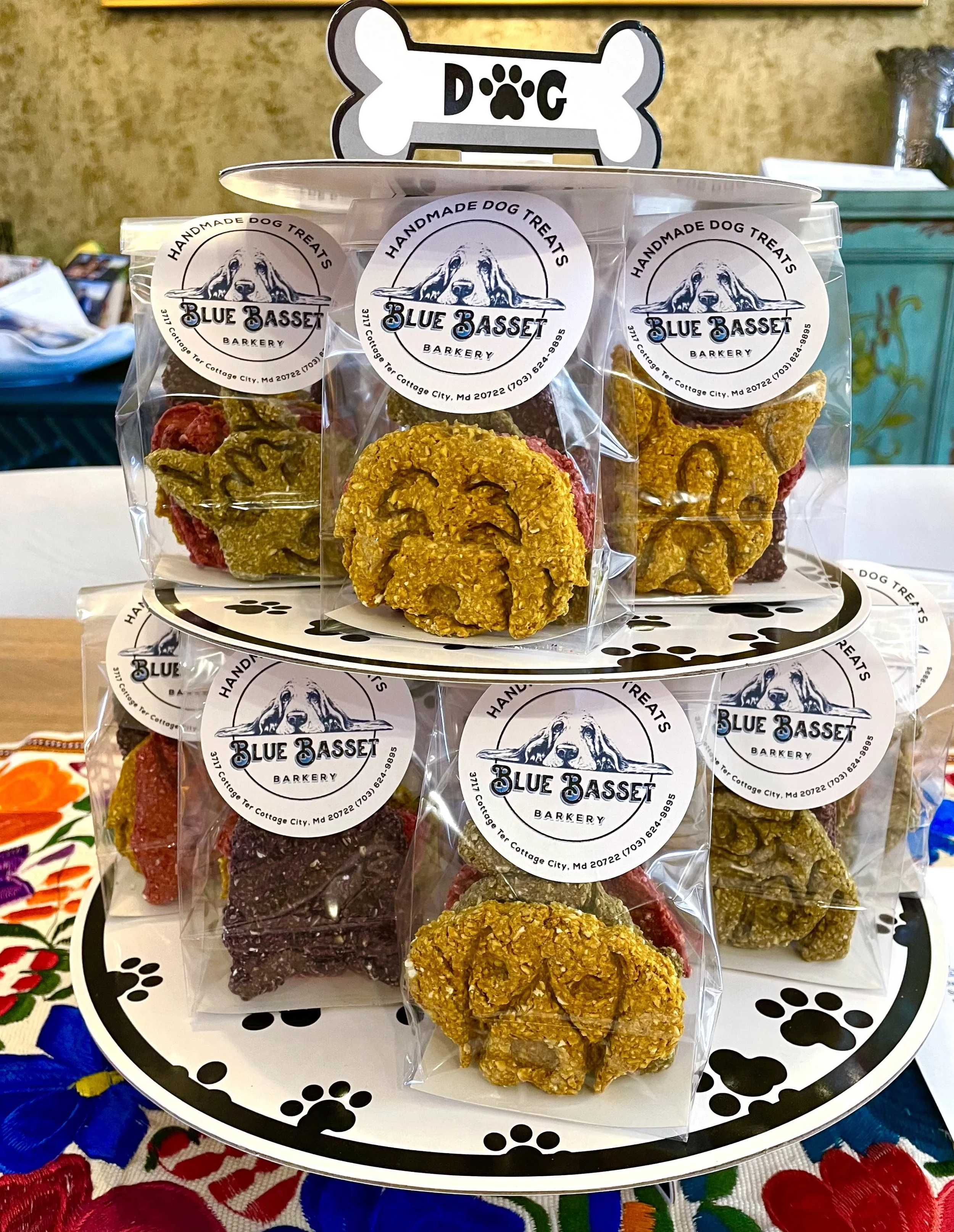 Blue Basset Barkery is a woman-owned Maryland small business and pet bakery and boutique. We specialize in handmade dog cookies and confections, as well as dog accessories and customizable apparel.